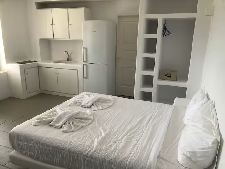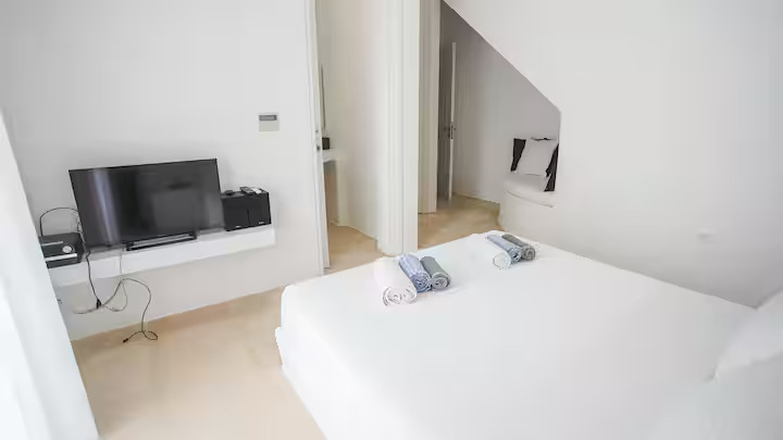 The large room is in the biggest of the three villas on the property with a shared kitchen, living room and pool.