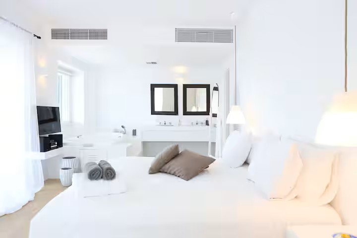 One of the superior rooms has a jetted bathtub in the bedroom area with a view overlooking the sea (this will be allocated to the first person to book a superior room).